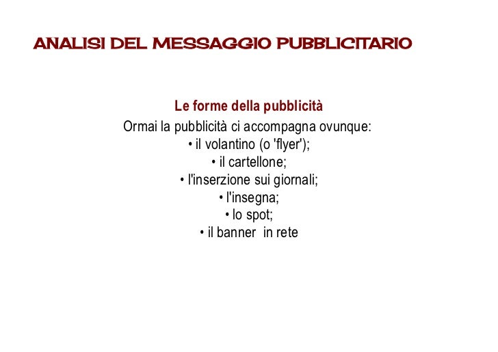. Esempio analisi pubblicità - Docsity Semiotica e creatività pubblicitaria. Analisi e gestione del processo creativo in pubblicità. - Tesi di Laurea - Tesionline La gestualità nella coomunicazione pubblicitaria: un analisi by Petra Jancigova